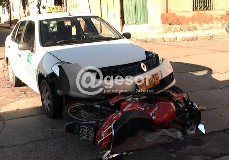 Un choque entre un taxi y una moto se registró en tempranas horas de la mañana de este miércoles, en hecho ocurrido en la intersección de Gomensoro y Ferreira Aldunate. El taxi marca Renault, matrícula KTX-1014, conducido por Delio Leonel Muela se dirigía por calle Gomensoro, mientras que la moto Winner, matrícula SGH-648, guiada por Alina Yudit Cáceres Ramírez, lo hacía por calle Ferreira Aldunate.