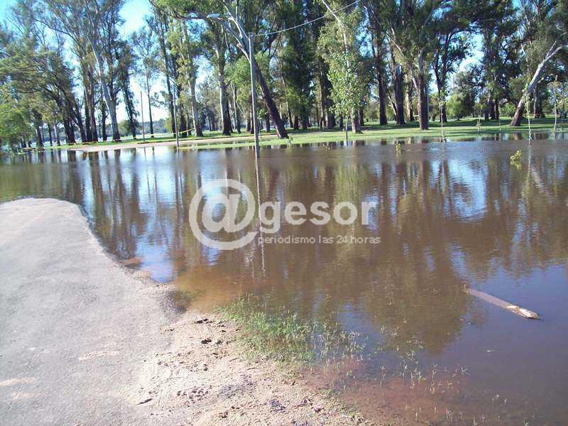 El río Negro frente a Mercedes experimentó un repunte como consecuencia de las lluvias caídas, afectando la zona baja del  Parque Gernika.
