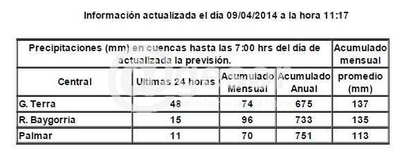 Desde el pasado martes  el río Negro frente a Mercedes  comenzó a experimentar una crecida, que por el momento  solamente viene afectando la parte baja del Parque Gernika y la zona del  Puerto de Mercedes.  Como muestran las fotografías, las calles interiores del extremo Oeste del Parque Gernika han sido cortadas al subir el nivel del  río. En tanto   UTE emitió un comunicado  dando cuenta del movimiento de compuestas registrado este miércoles. El mismo expresa: “A partir de la hora 16:00 del día Miércoles 9 de Abril de 2014 se procederá a la apertura parcial de las compuertas del vertedero de la Central "Dr. Gabriel Terra" ( Rincón del Bonete), lo       que originará una elevación de los niveles del Río Negro entre centrales de 0,5 metros     aproximadamente junto a la Central Dr. Gabriel Terra, y de 0,2 metros en Paso de los Toros.   El caudal de la central variará 220 m3/seg, pasando de 680 m3/seg a 900 m3/seg.
