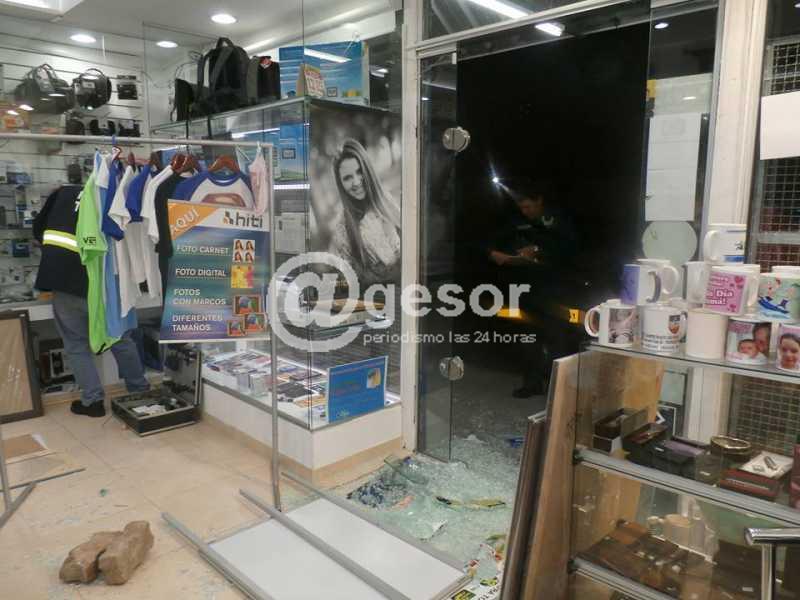 Los ladrones derribaran como si nada la puerta de vidrio del local comercial de Foto Alfa, de Andrés Sosa, ubicado en calle Artigas entre Ferrería y Sánchez, frente al complejo habitacional del barrio céntrico de Mercedes. Como lo muestran las imágenes claramente, la puerta fue destruída, lo que permitió que los delincuentes entraran al local y se llevaran varios efectos. Tanto en el local céntrico de Artigas y Giménez, que era donde también operaba la empresa de fotografía mercedaria, como en el nuevo local que se encuentra situado al lado del bar "El Uruguayo", Sosa se ha visto perjudicado una vez más, lo que preocupa de sobremanera al empresario que es perjudicado económicamente, más allá de que el local esté asegurado o no.