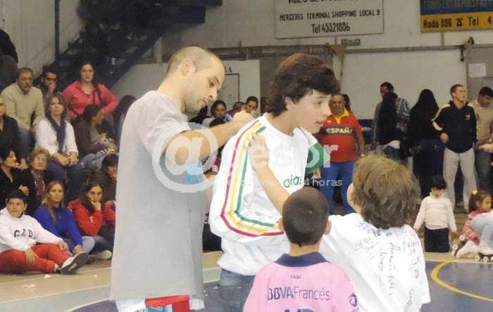 En el Estadio Della Santa Marotta expresó a @gesor su alegría de poder estar en Mercedes colaborando con una escuela de su ciudad, se saludó afectuosamente con viejos conocidos del baloncesto y firmó autógrafos a unos cuantos niños que se acercaron para testimoniarle su afecto y admiración.