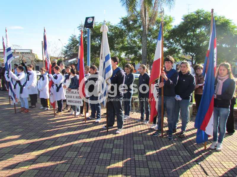 Con escasa participación de público, pero con la mayoría de las autoridades presentes, se realizó en horas de la mañana de este domingo en la Plaza Artigas de Mercedes, el acto conmemoración por el 203º aniversario de la Batalla de las Piedras y el Día del Ejército Nacional.