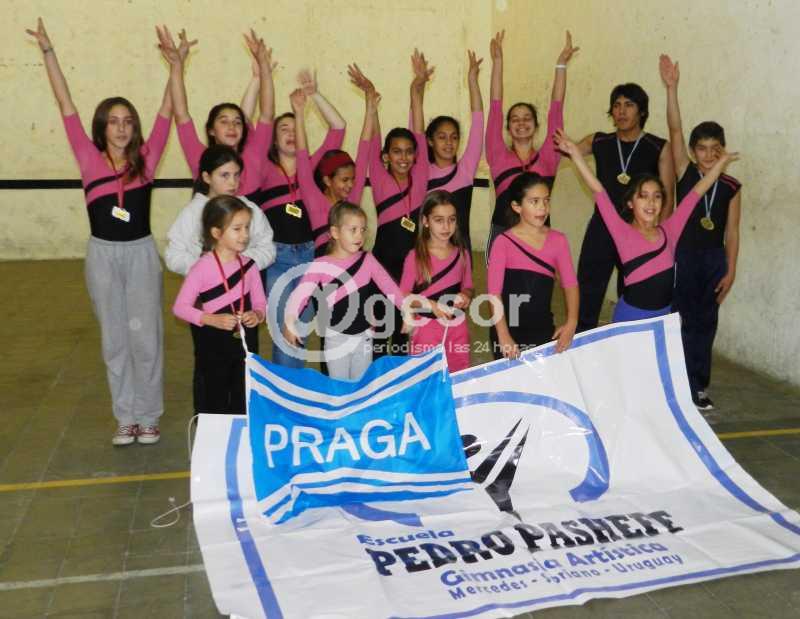 Doble actividad realizaron gimnastas de la Escuela "Pedro Pasheff" del Club Praga de Mercedes Por un lado las femeninas en el Campus de Maldonado y por el otro los masculinos en torndeo del Club Olimpia en Montevideo