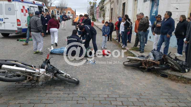 En la intersección de las calles Colón y Casagrande colisiaron fuertemente dos motociclos, resultado del episodio tres personas lesionadas que debieron ser trasladadas en ambulancias por separado.
