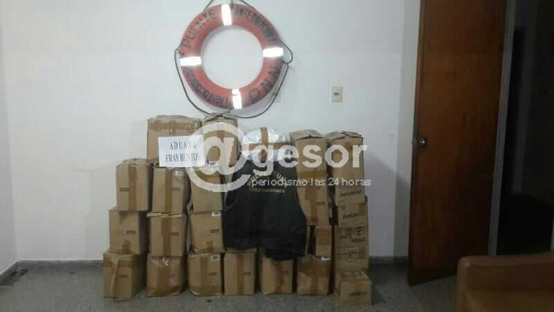 Actualizado- (por Martín Corujo) Otra importante incautación de contrabando llevó a cabo en el Puente Internacional "General San Martín", personal de la División Investigaciones y Narcotráfico (DIVIN) de la Prefectura Nacional Naval con apoyo de funcionarios de Prefectura del Puerto de Fray Bentos. Todo se basó en trabajo de inteligencia que se venía concretando desde hace un tiempo a esta parte, poniéndose énfasis en la mercadería que llega ilegalmente por agua y a través de los puentes internacionales que unen Uruguay con Argentina.