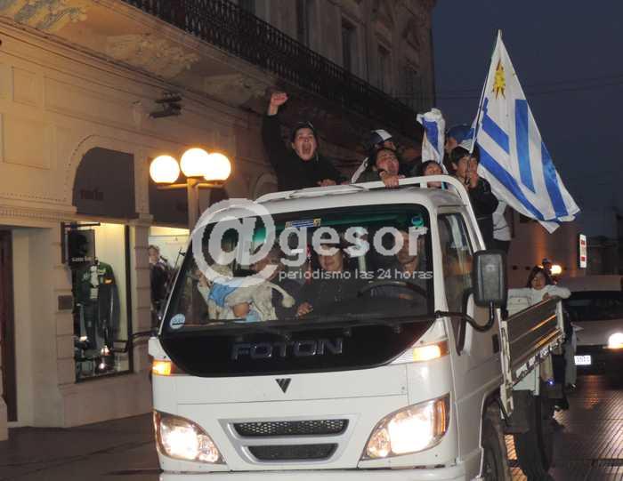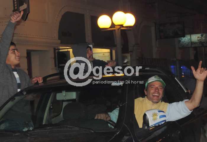 El importante triunfo conseguido este jueves por la selección uruguaya de fútbol en la Copa del Mundo, que la mantiene con esperanzas de pasar a la segunda ronda, originó en Soriano ruidosas manifestaciones de afecto hacia la Celeste, como en todo el país. Apenas culminado el partido que enfrentó a Uruguay e Inglaterra en San Pablo, ganado por la selección uruguaya con dos golazos de Luis Suárez (2-1), muchos sorianenses salieron a celebrar a las calles, a pesar del frío, portando banderas y luciendo camisetas de Uruguay, sobre todo en Mercedes, Dolores y Cardona, es decir en las tres ciudades del departamento, pero en las restantes localidades también se festejó mucho el triunfo celeste, como en Palmitas y José Enrique Rodó. Los mayores festejos tuvieron lugar en el centro de la capital departamental y en la Rambla Batlle y Ordóñez, donde cientos de mercedarios dieron rienda suelta a su alegría por esta victoria logrado frente a los ingleses. Se revivieron así aquellas escenas de júbilo que habíamos podido presenciar durante la disputa del Mundial de Sudáfrica 2010, cuando los celestes llegaron al cuarto puesto, como ya había sucedido en los mundiales de Suiza 54 y México 70.