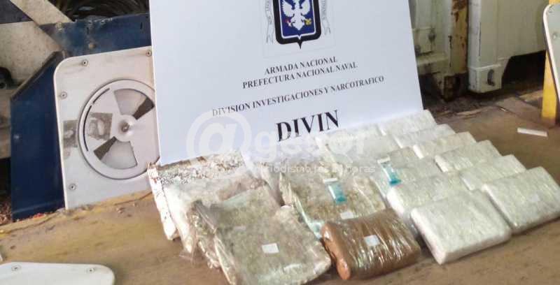 (por Martín Corujo) En el marco de la operación llamada "Gemma", personal de la División de Investigaciones y Narcotráfico de la Prefectura Nacional Naval en forma conjunta con Prefectura del Puerto de Montevideo procedió a incautar 24,846 kilogramos de clorhidrato de cocaína que se encontraba envuelta en 21 paquetes en la zona del motor y conductos de aires, correspondiente a un contenedor vacío.