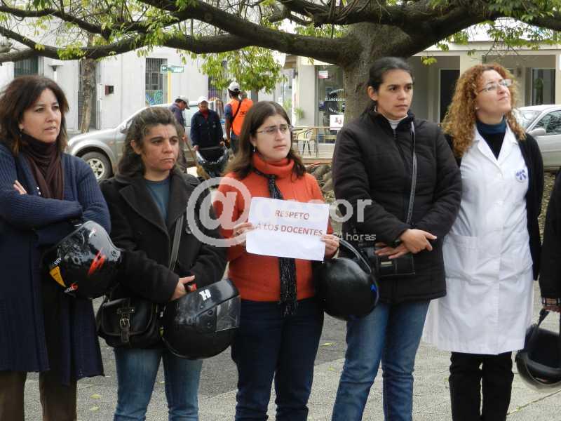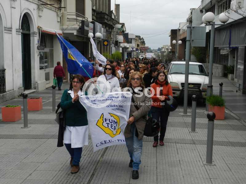 Posterior al encuentro en plaza Independencia los maestros, trabajadores y docentes jubiladas, marcharon por Colón, Rodó, Artigas y Ferreira Aldunate culminando frente a la sede de la Inspección Departamental de Primaria.