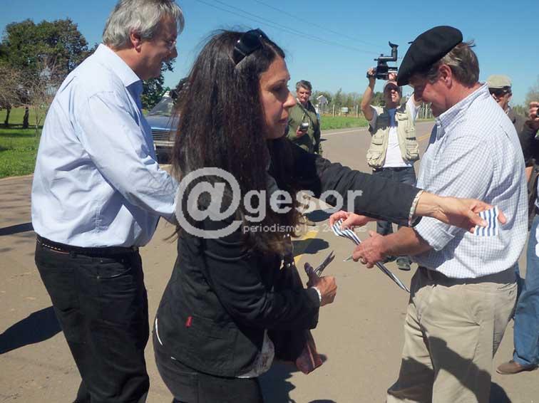 Fotografía de Alvaro Martínez el ministro Pintado y el intendente Besozzi en el corte de cinta