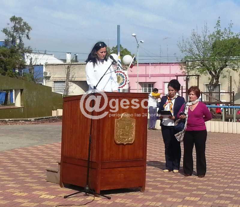 La parte oratoria estuvo a cargo de la estudiante de 4º año magisterio, Alejandra Román, en representación del Instituto de Formación Docente, quien recordó pasajes de la vida del prócer y del que dijo” un hombre de razón al que el pueblo convirtió en prócer por su personalidad, que deja ver en su ideología una convicción”.