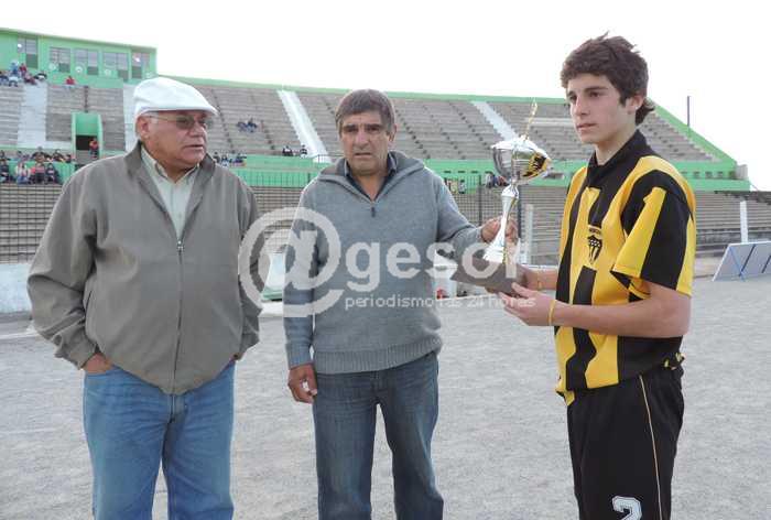 No fue un buen fin de semana para el plantel sub-15 de Peñarol de Mercedes. Como fuera publicado por @gesor, los aurinegros perdieron la primera final contra Bristol, por el Campeonato Competencia “Zoilo Viera Castro” (4-1). Sin embargo, los hinchas carboneros tuvieron la alegría que durante este partido la Liga le entregó a Peñarol el trofeo conquistado por ganar el Torneo Clausura. En el descanso intermedio, el capitán de los aurinegros, Cristian Polero, recibió la Copa entregada por el Secretario de la Liga, Liris Manzanares, y por el delegado de la selección de la categoría, Daniel Godoy.
