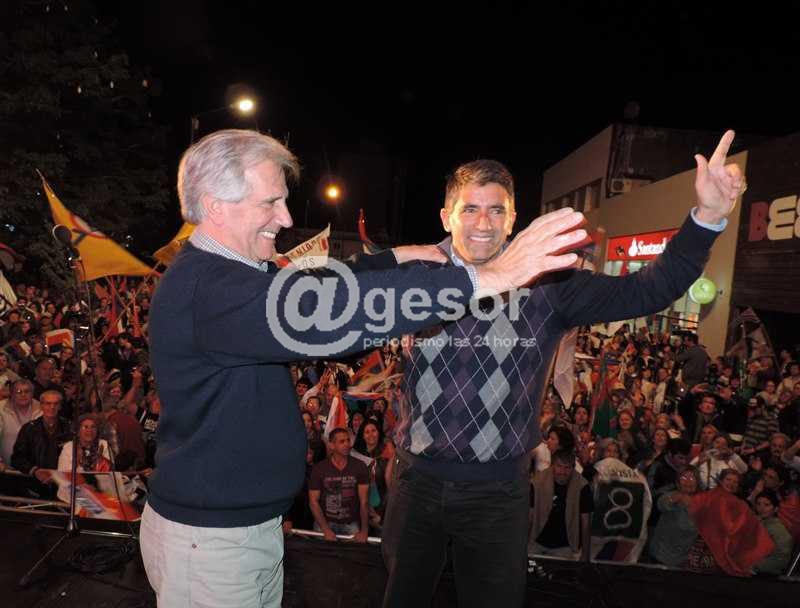 El Dr. Tabaré Vázquez y Raúl Sendic fueron los únicos oradores en el acto realizado en Mercedes que comenzó sobre las 20 horas, donde las referencias locales estuvieron en el discurso de los candidatos cuando enumeraron los logros de los dos gobiernos frenteamplistas y de cómo encontraron el país, donde ambos candidatos afirmaron que el Frente Amplio ganará la elección en primera vuelta.