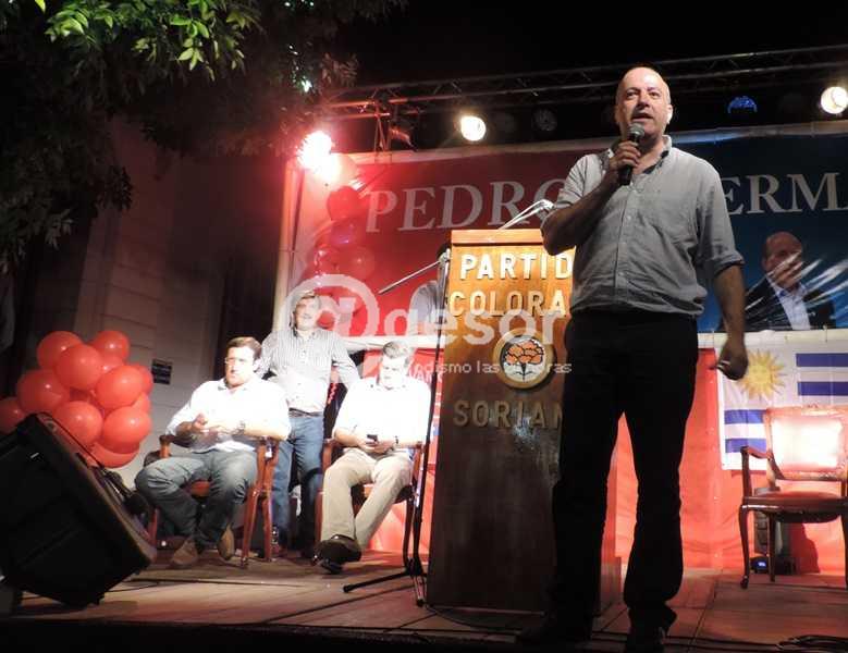 La fórmula presidencial colorada encabezó un acto frente a la sede departamental, en Mercedes. Pedro Bordaberry y Germán Coitinho , acompañados de los candidatos a diputado Fedrico Barboza y José Amy subieron al escenario montado en la calle donde numeroso público se congregó embanderado y con las insignias de las diferentes agrupaciones coloradas. La parte oratoria la inició Federico Barboza, candidato a diputado por la lista 15 quien destinó gran parte de su tiempo en destacar la figura de José Amy y el trabajo realizado durante este período de gobierno en la cámara de diputados. “El camino que ha hecho el diputado Amy hay que continuarlo” dijo Barboza. Adelantando “seguramente José será diputado” y además “será Senador de la República , y nosotros tenemos el compromiso de estar respaldándolo” ya que “apuntamos al mismo destino, sumar al Partido Colorado”.