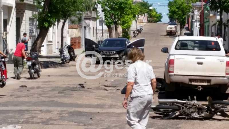 Tras impactar la moto, el Peugeot continuó la marcha e impactó contra camioneta Toyota Hilux KDA 6071 que se encontraba estacionada a la causó importante abollones, torció el diferencial y rompió la llanta y cubierta trasera que estaba del lado del cordón, deteniendo la marcha a unos 60 metros del impacto inicial y a contramano.
