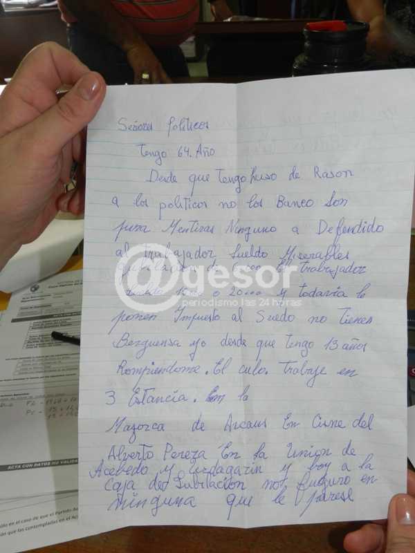 Uno de los tantos "objetos extraños" que aparecieron es la carta que se encontró en un sobre en el circuito 13 que funcionara en el Círculo Policial.
