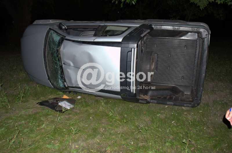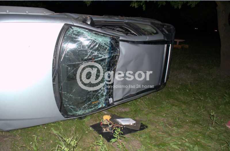 Dos jóvenes protagonizaron un espectacular accidente en pleno Parque Guernika (Carrasquito) de la ciudad de Mercedes, cuando la camioneta que ocupaban terminó volcando.