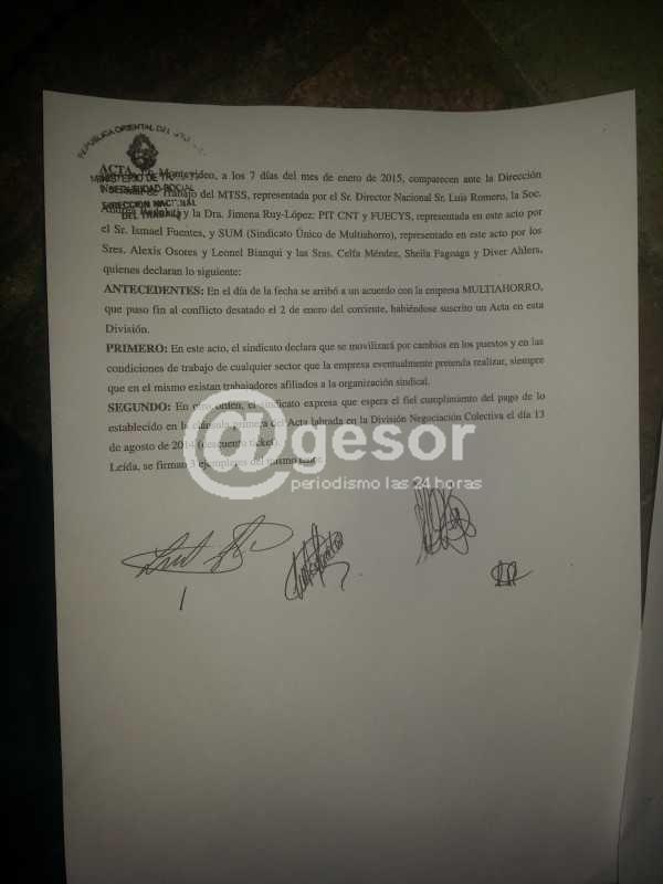 A pesar de lo desgastante de las negociaciones, los trabajadores organizados de Multi-Ahorro celebran el acuerdo que finalmente fue refrendado de manera tripartita en el Ministerio de Trabajo y Seguridad Social(MTSS), entre empresa, gremio y MTSS, que propone en su parte principal la formación de una comisión integrada por empresa y trabajadores para analizar desde el próximo 16 de enero en un plazo no mayor a 30 días, la situación de cada sucursal, en el intento de reestructura encarado por la empresa en la tercerización en la elaboración de alimentos.