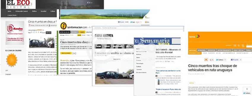 Inmediata repercusión concitó la tragedia de Agraciada donde murieron 5 personas en un accidente de tránsito cerca de la planta de ISUSA. Casi de inmediato de conocerse la noticia medios de comunicación nacional difundieron detalles de la tragedia. La noticia, por su singularidad dramática, fue de tal magnitud que además de la prensa capitalina, fue difundida por diferentes páginas web, no solamente uruguayas sino también del exterior, como lo evidencia la imagen que publicamos. El dolor también repercutió en las redes sociales, tanto en Twitter como facebook, en una jornada oscura para los departamentos de Soriano y Colonia.