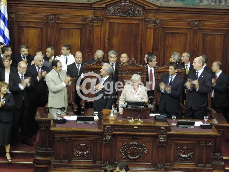 En Plaza Independencia el Dr. Vázquez pronunció un discurso escueto, limitándose solamente a saludar y agradecer por lo que consideró una distinción, el acceder por segunda vez a la Presidencia de la República.