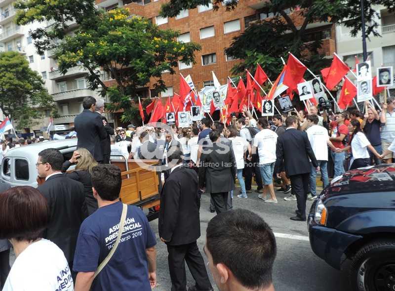 La caravana salió del Palacio Legislativo para llegar a Plaza Independencia donde Tabaré Vázquez y Raúl Sendic, en la caja de la camioneta Forson 1951-el vehículo de la juventud del Presidente-, saludaron a la gente que se sumó al festejo.