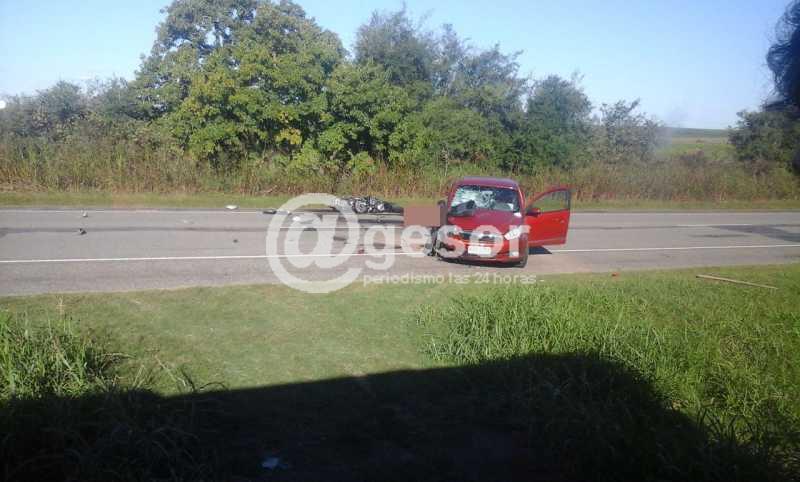 (por Martín Corujo) El hecho sucedió este sábado, como ha sido informado por @gesor, a la altura del km 294 de la Ruta 21 cuando el Fiat Siena KAA 1376 que se dirigía en la dirección de Nueva Palmira a Dolores era conducido por una mujer de iniciales M.R.B.C. aminoró la marcha para tratar de dirigirse a una capilla existente en el lugar, siendo encandilada su conductora al pretender cruzar el pavimento, no viendo que de frente venía la moto Yamaha de 600 cc matrícula IBQ 506, que era guiada por Pablo Deus Nebot de 29 años quien ante la violencia del impacto falleció en el acto debido a las lesiones recibidas.