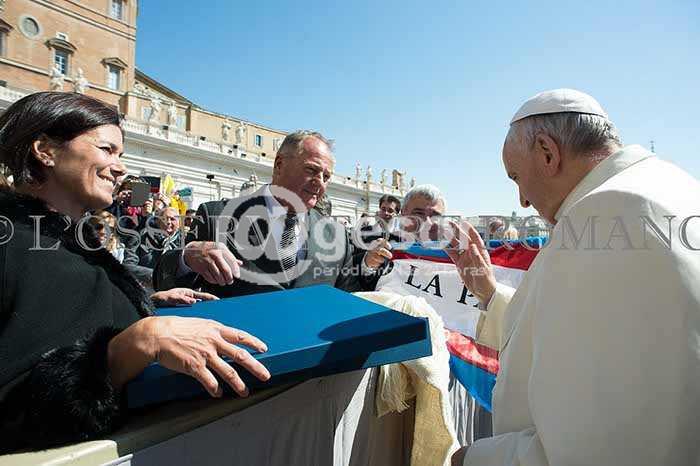 En la oportunidad, José Luis Gómez le entregó a la máxima autoridad de la Iglesia Católica una misiva en la que le invita a conocer Soriano durante la visita pastoral que realizará a Uruguay. “Ojalá pueda ir”, fue la respuesta del Papa, quien además bendijo la bandera de nuestro departamento que había llevado la pequeña comitiva sorianense y que luce la leyenda "Aguí Nació la Patria", en recuerdo de los grandes acontecimientos históricos que tuvieran lugar en Soriano, como el Grito de Asencio de 1811.