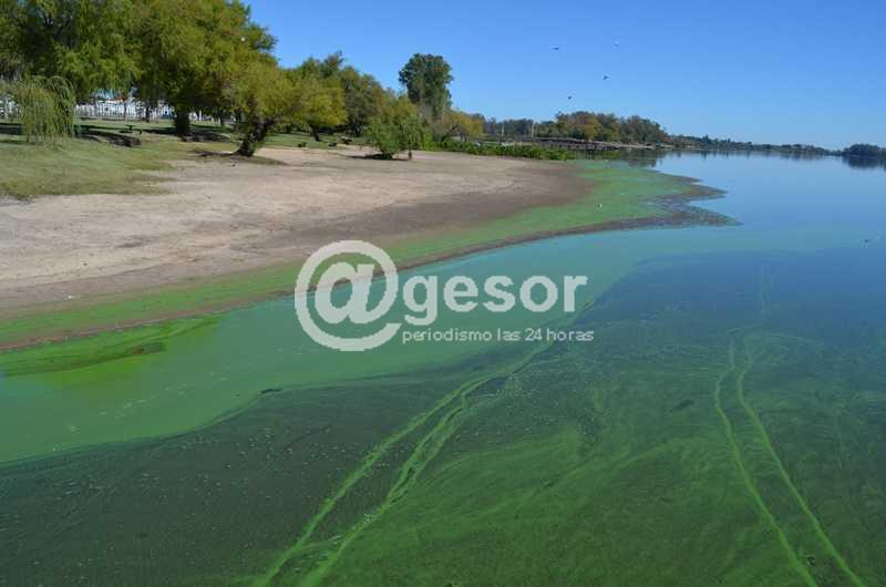 En una imagen que es un claro ejemplo de la problemática que atraviesa el plantea, así luce en la jornada de hoy nuestro río Negro, con su costa frente a Mercedes cubierta de algas verdes y también de desperdicios dejados por quienes lo visitamos.