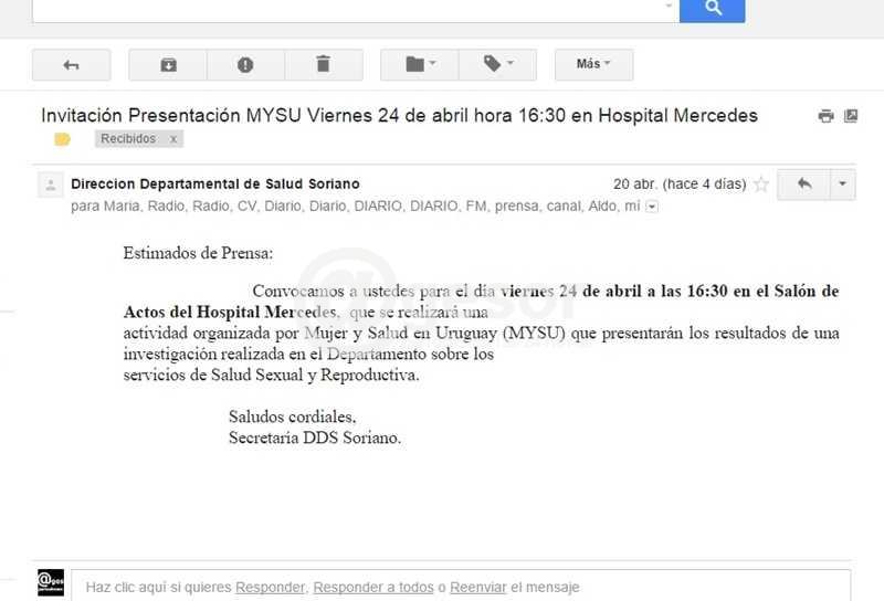 (por Aldo Roque Difilippo) El comienzo de la reunión realizada en Salón de Actos del Hospital Mercedes se centró en cuestionamientos a la falta de información de parte de las instituciones de la Salud de Soriano al Observatorio que realizó el relevamiento sobre Salud Sexual y Reproductiva. En dicha reunión además de las quejas por la falta de esta información, de importancia para conocer la realidad local y aportar un panorama al respecto, se hizo mención a que Mujer y Salud en Uruguay (MYSU) debió recurrir a la Ley de Acceso a la Información para poder acceder a estos datos. Algo que aparentemente las nuevas autoridades del Ministerio de Salud aportarían en breve.