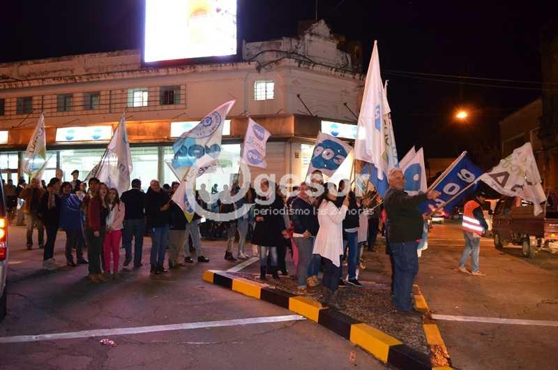 El centro de Mercedes a esta hora se llenó de banderas nacionalistas festejando el  triunfo de Agustín Bascou.