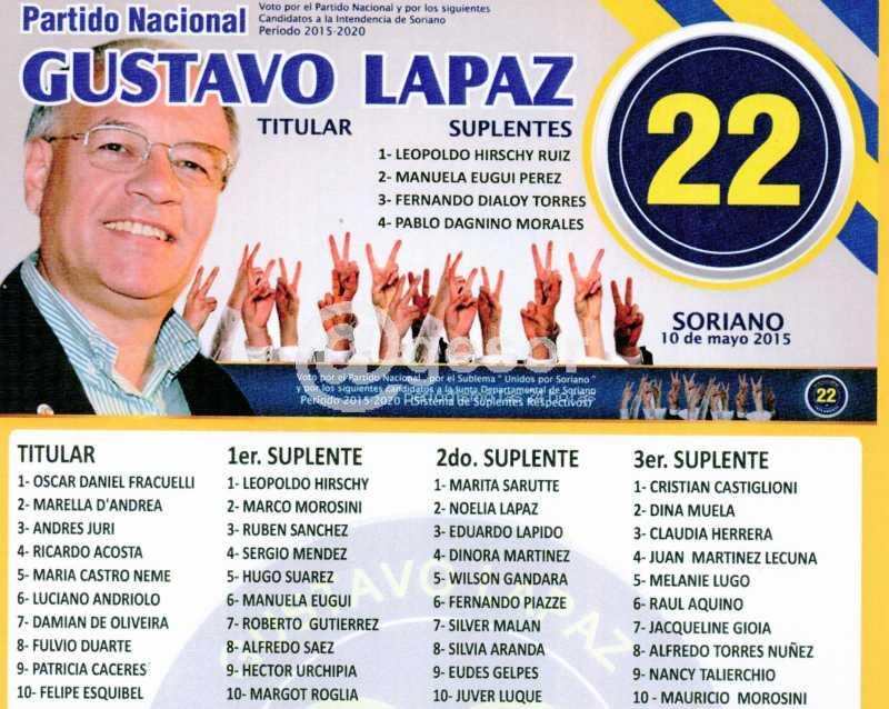 La Lista 22 que llevaba como candidato a la Intendencia de Soriano a Gustavo Lapaz fue la más votada, con 14.562 adhesiones, superando a la 903 que esta vez alcanzó 11.697, o sea que la diferencia es de 2.865.