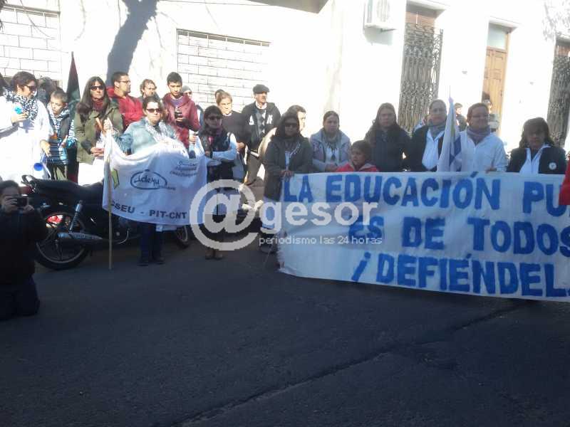 En el marco del paro general parcial convocado por el PIT CNT a nivel nacional, en el caso de Soriano, los maestros detuvieron actividades por 24 horas y se movilizaron con concentración en plaza Independencia de Mercedes y luego concurrieron al acto desarrollado en la sede del Plenario Intersindical.