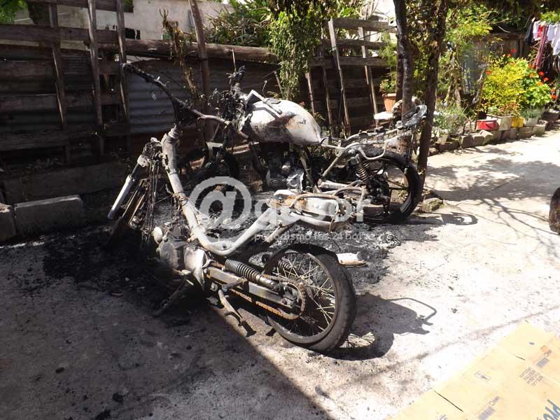 Ambos vehículos ardieron a tal punto de quedar inutilizables, como se observa en la fotografía registrada por @gesor. En ese sentido, nuestra Agencia Soriano de Noticias habló con la propietaria de la casa, María Sainz, quien dijo no encontrar explicaciones a lo sucedido. Según la moradora, sobre las 05:30 de la madrugada de este jueves, cuando su esposo se retiraba de la vivienda rumbo al trabajo, observó que una persona desconocida merodeaba la zona-según comentó- en actitud sospechosa, aunque le restó importancia. Minutos más tarde, sobre la hora 6, los ocupantes de la casa (María, su madre y su hija), al sentir una fuerte explosión constataron que los dos vehículos (Winner 110 y 125 cc.) que se encontraban estacionados en el patio interior del domicilio estaban ardiendo, afectadas en su totalidad. Como dato a tener en cuenta, el patio se encuentra ubicado a unos 25 metros de la puerta de ingreso a la casa, siendo ésta la única entrada, salvo que quien desee ingresar lo pueda hacer saltando los cercos laterales que dan contra las casas linderas. Consultada por @gesor, María Sainz, dijo que el relacionamiento entre su familia y los vecinos es muy buena, descartando que alguna enemistad haya motivado el siniestro con características de atentado. Si bien el peritaje técnico fue realizado por parte de los investigadores del caso, hasta el momento no se conoce el resultado del mismo. La entrevistada transmitió muestra de dolor e impotencia por lo ocurrido, deseando que la investigación arroje resultados positivos para que la policía pueda dar con él o los responsables del hecho.