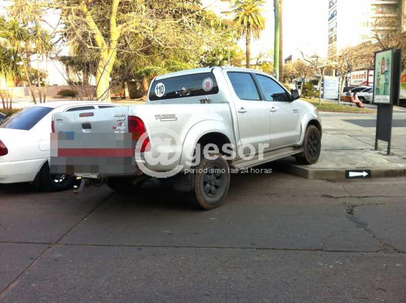 Por otra parte, se ve a una camioneta mal estacionada con la parte delantera sobre la vereda de la Plaza Independencia de Mercedes.