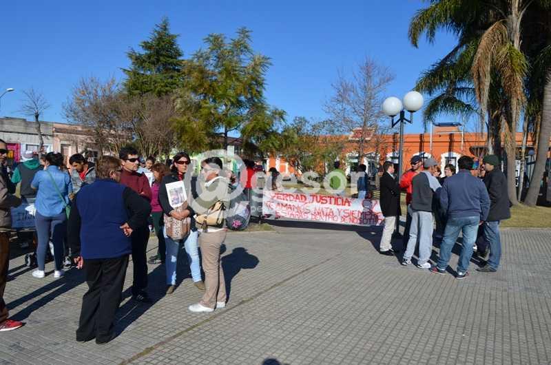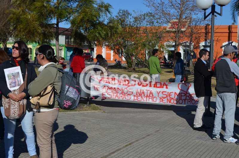 Con un cartel reclamando “Verdad y Justicia” los familiares de Victoria Sartori se manifestaron en Plaza Artigas de Mercedes.