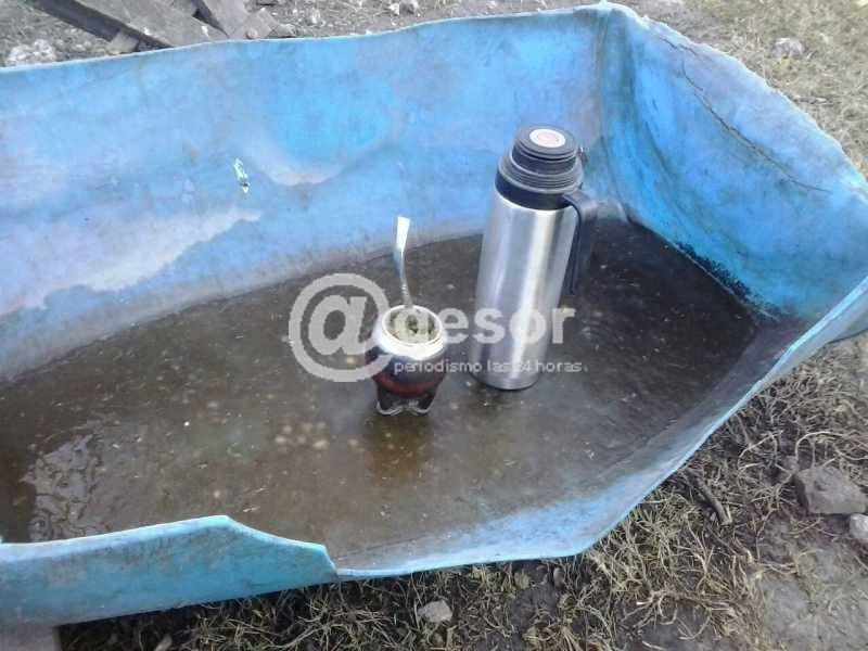 En la fotografía se puede apreciar claramente como termo y mate fueron cómplices de la helada registrada en la mañana de este miércoles.