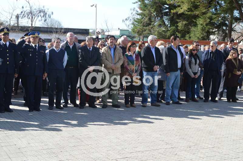 "Nos reunimos en esta plaza recientemente remozada, donde algunos sectores han recuperado características originales, buscando mejorar la comodidad y seguridad para los vecinos; pero qué además posee en el centro la columna de la libertad con su tradicional estatua que también ha sido restaurada, lo que la convierte en el mejor marco para este festejo", comenzó diciendo la Directora de Cultura Lourdes Cerchi.