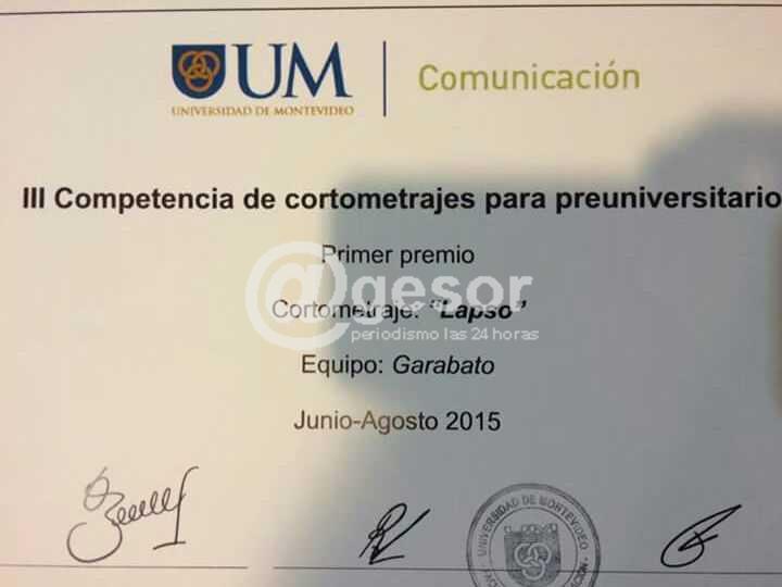 Jóvenes estudiantes de 6to. de Arte del Liceo Campos obtuvieron el 1er. premio en la III Competencia de Cortometraje para Pre-Universitario organizado por la Facultad de Comunicación de la Universidad de Montevideo.