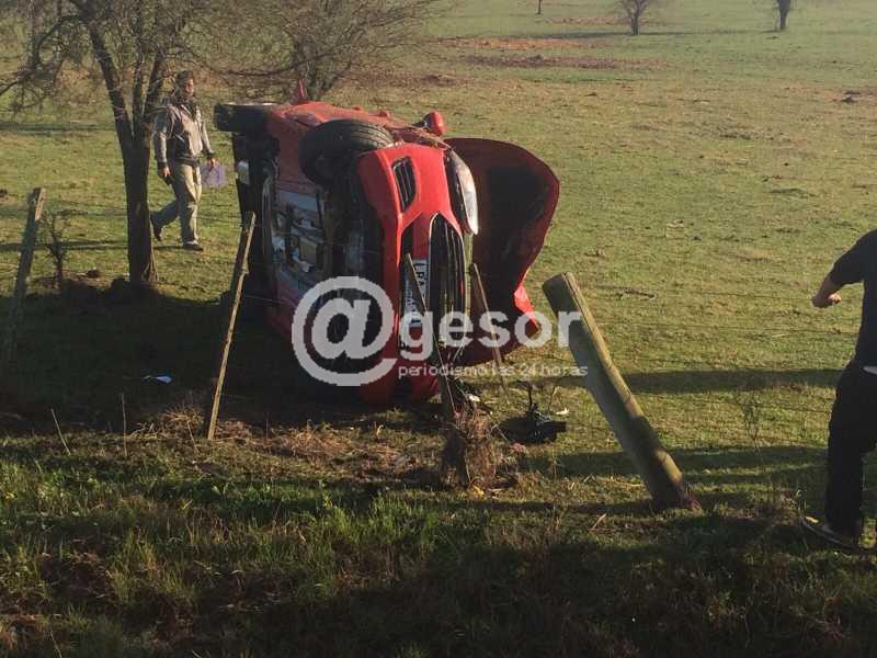 Según nos cuenta un lector que nos hizo llegar la fotografía a través de la vía whatsapp (092 88 93 29) los dos ocupantes del vehículo volcado resultaron con lesiones leves y ni bien fueron asistidos fueron trasladados al Hospital Evangélico.