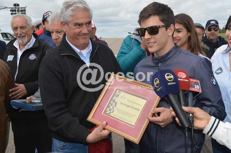 Tal como estaba previsto, este domingo minutos antes de las 13:00 horas fue homenajeado en el Polideportivo "Ciudad de Mercedes" el joven y reconocido piloto uruguayo, Santiago Urrutia, quien además de recibir la distinción de parte de la Intendencia de Soriano, recibió reconocimientos de parte de AUVO y del SADAM en nombre de Miguel Angel Mary.