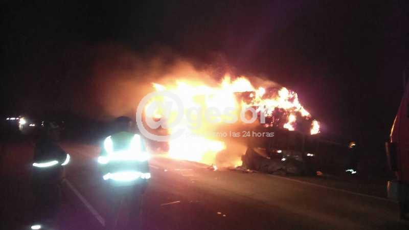 Un camión con matrícula argentina se incendió en cercanías de la localidad de Santa Catalina, por la ruta nacional N°2. Por factores que se investigan el vehículo comenzó a desprender llamas, generando nerviosismo y congestionamiento en el tránsito de esa zona. Agradecemos al usuario de facebook "Alfafraybentos- Alfaproducciones Fray Bentos" que nos hiciera llegar imágenes de lo acontecido en la noche de este jueves.