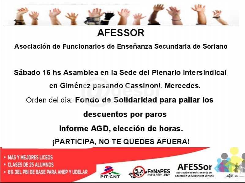 Sábado 16 hs Asamblea en la swede del Plenario Intersindical en Giménez pasando Cassinoni, Mercedes