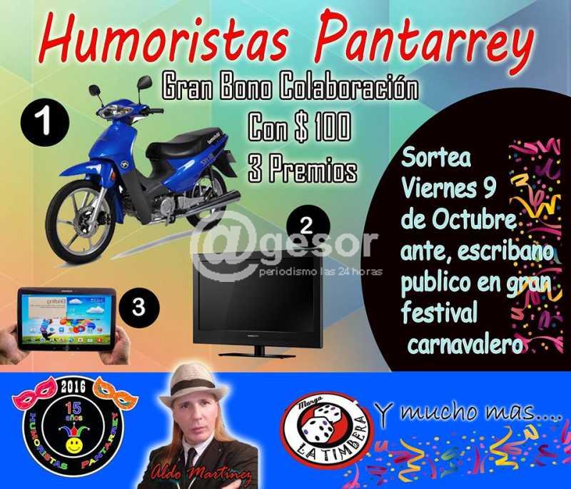 El Grupo de Humoristas Pantarrey de Mercedes, celebra 15 años y lo hacen con un gran espectáculo carnavalesco.Este viernes 9 de octubre en Salón de Con Los Mismos Colores sobre ruta 2, desde las 21.30 horas.