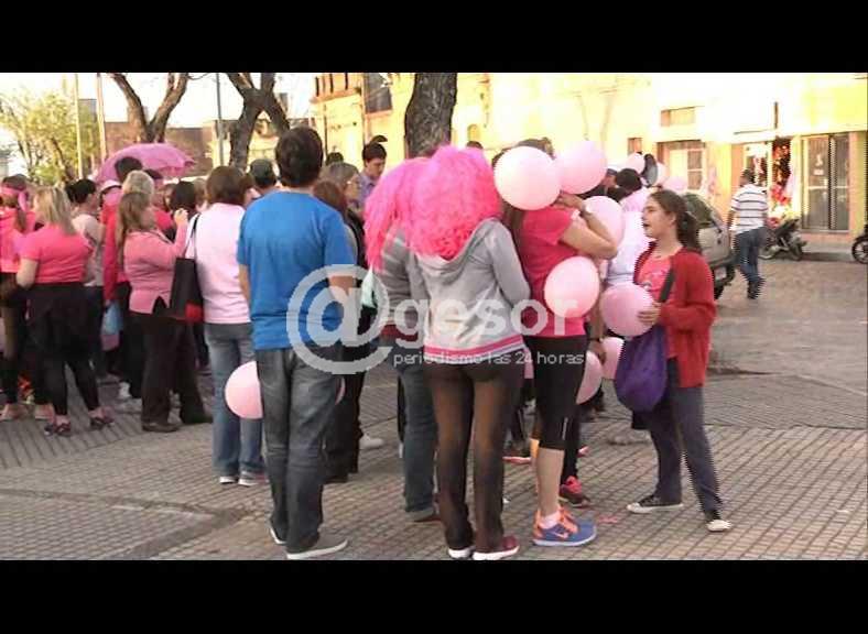Este miércoles, tal como estaba previsto, se concretó la unión entre las plazas Artigas e Independencia de Mercedes, en el marco de la caminata rosada por la vida realizada como forma de prevenir el cáncer de mama.