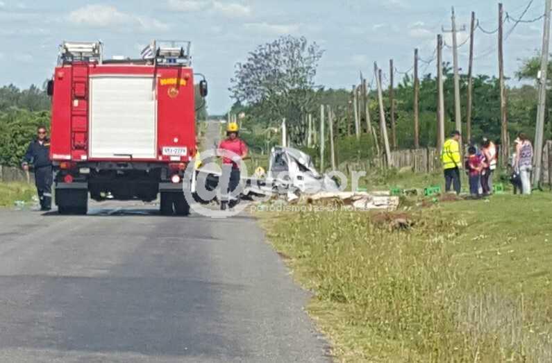 De acuerdo a lo que informa Jefatura de Policía de Soriano siniestro de tránsito fue atendido por seccional 3a. en camino Pense, a unos 2 km. aproximadamente de Ruta Nº 2, donde se ubicó la camioneta DFSK, modelo pick up, KMB 6192, afectada al servicio de empresa local, en posición normal con la parte de la cabina en la cuneta y la caja sobre el camino y en su entorno gran cantidad de botellas de soda, cajones de plástico, esparcidos en un radio de 20 mts. Trasladado su conductor, J.C.R.A. de 48 años, en ambulancia al hospital local se le certificó “politraumatizado grave”. Se dio intervención a Policía Científica y Brigada de Tránsito Municipal y Bomberos, efectuando tareas inherentes a sus cometidos, tramitándose a la Justicia. Se continúan actuaciones para establecer las causas del accidente.