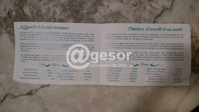 En el marco del Taller de Expresión Artística e introducción al teatro I y II se realizó este jueves en horas de la noche un espectáculo en el Teatro 28 de Febrero, bajo los textos y coordinación general del profesor Gastón Fernández Arricar. La propuesta plasmada sobre el escenario fue "La leyenda de la niña mariposa- Cómplices (al rescate de un sueño).