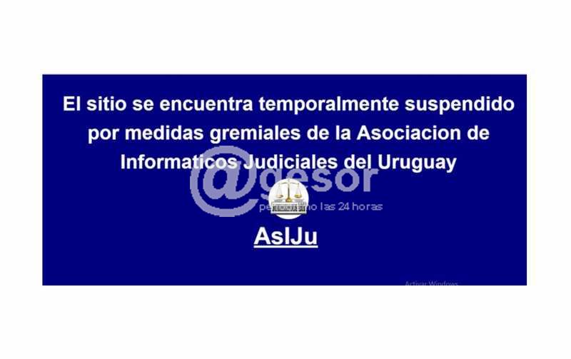 Quienes habitualmente ingresamos a esa página web para recabar información oficial al respecto nos encontramos con un cartel que expresa: “El sitio se encuentra temporalmente suspendido por medidas gremiales de la Asociación de Informáticos Judiciales del Uruguay. AsIJu”.