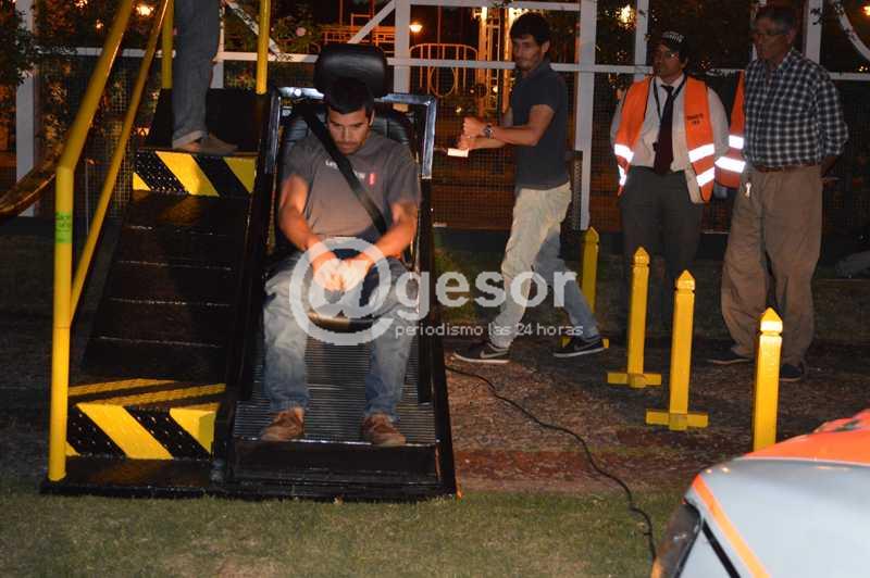 Con dos jornadas de seguridad vial cumplidas en la rambla mercedaria, junto al Rosedal, se realizó la actividad de prueba del simulador de siniestro de tránsito construido por estudiantes de la Escuela Técnica Superior "Pedro Blanes Viale".