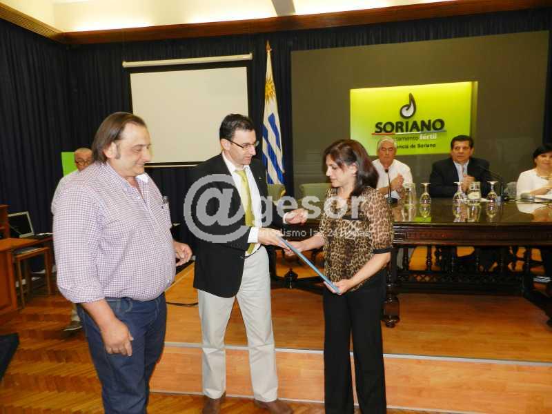 Reconocimiento a CLAUDIA ROSSANA IGLESIAS, por su significativa obra social, solidaria y humanitaria, siendo impulsora de la creación de la Fundación Sebastián Miranda, habiendo resultado electa “Mujer del Año 2014 -2015”. Recibió el diploma de manos de los ediles Luis Ciganda (Proponente) y Marcos Morosini.