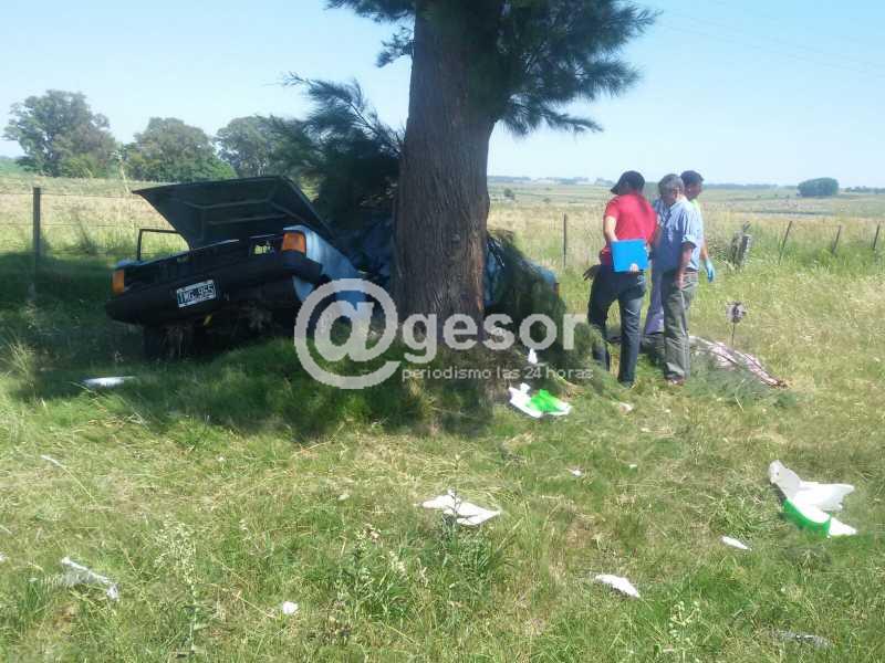 El hecho ocurrió en ruta 2, cercanía de Santa Catalina, cuando el automóvil VW Dodge 1500 se dirigía de Norte a Sur, a visitar familiares en la capital uruguaya, cuando por causas que se procuran establecer el vehículo se sale de la carpeta asfáltica e impacta contra un árbol quedando prácticamente doblado al medio, ya que el impacto se dio entre la puerta del conductor y la trasera. Viajaba en el coche una pareja, falleciendo el hombre, mientras que la mujer fue trasladada a centro asistencial de Cardona en estado delicado.