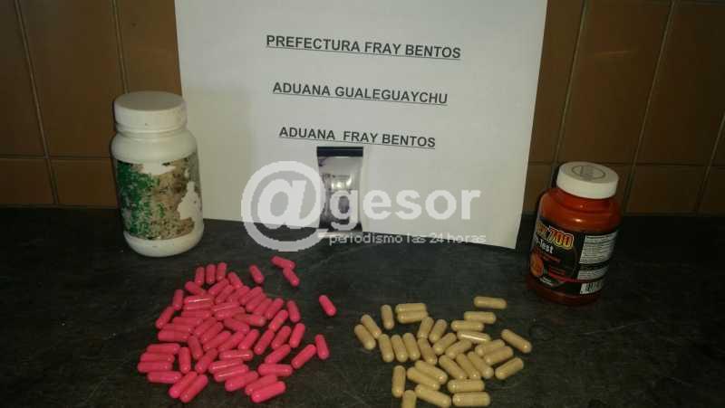 En el Puente Internacional "San Matín" funcionario de Prefectura de Fray Bentos halló dos recipientes tirados en la papelera de un baño público, los que al realizarse pruebas con aduana de Argentina y Uruguay dieron como resultado: "polvo de ángel metanfetaminas (éxtasis)".